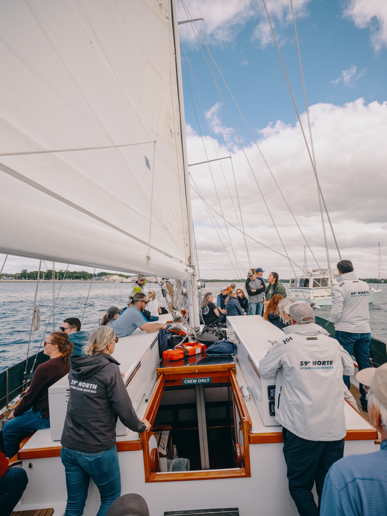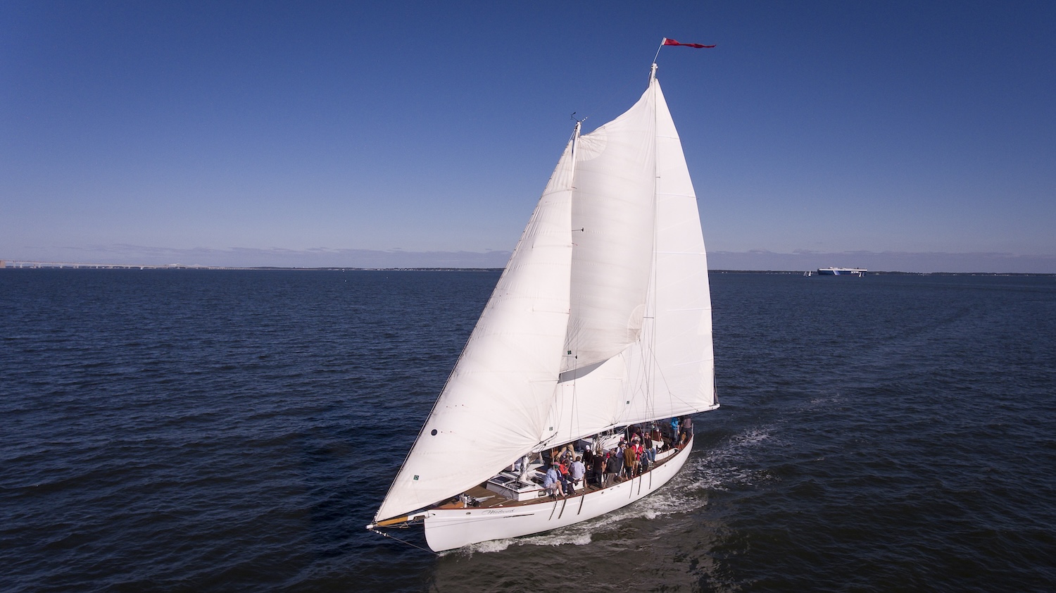The Kaye family had the boats purpose-built for daysail charters out of Annapolis, which after 30 years continues as the bread-and-butter of the WOODWIND business. Andy became friends with Jen, the daughter of Ken & Ellen who founded the business, and now 20 years after starting his sailing career on the WOODWIND's, Andy & a group of friends, with 59º North, bought the business from the retiring Kayes.