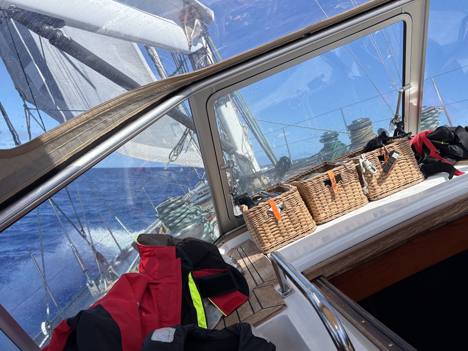 By Vilgot, ADRIENNE II Crew | The moment has finally arrived. The crew is all aboard, and it was such a joy meeting everyone in person for the first time. Spirits are high, energy on top and everyone is excited to throw the lines and be underway. Over the past days we have made Adrianne ready for her next Atlantic crossing.