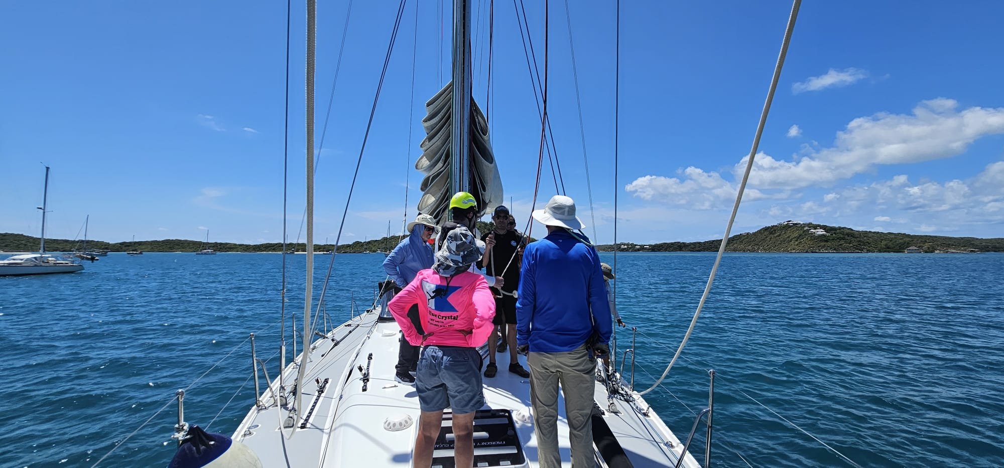 Wednesday saw the arrival of our latest crew of intrepid adventurers as we met on the Dock at the Antigua Yacht Club. The heat of the midday sun had us plan our safety briefings carefully as we began below decks and moved to the shaded area of the marina bar to complete our introductions and orientation of the trip ahead. Unfortunately, 2 of our group were unable to continue with us due to a medical emergency, and so our remaining crew of 8 bonded over a traditional Antiguan feast on our first evening together.