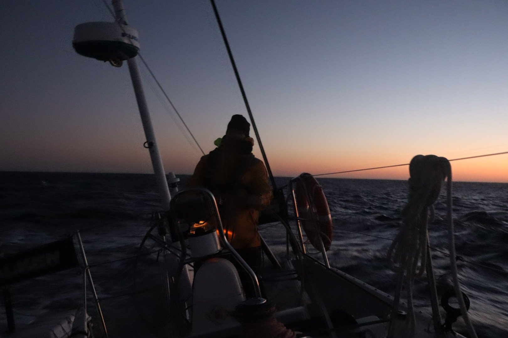 By Alex. FALKEN Skipper | Yesterday we left Ensenada at around 08:30 in the morning. It was sunny and you could barely feel any wind in your face. We went through the process of hoisting sails and straight away we dived into reefing drills followed by tacking. After 6 reefs and 12 tacks, we decided to settle into the watch system and embrace the night.