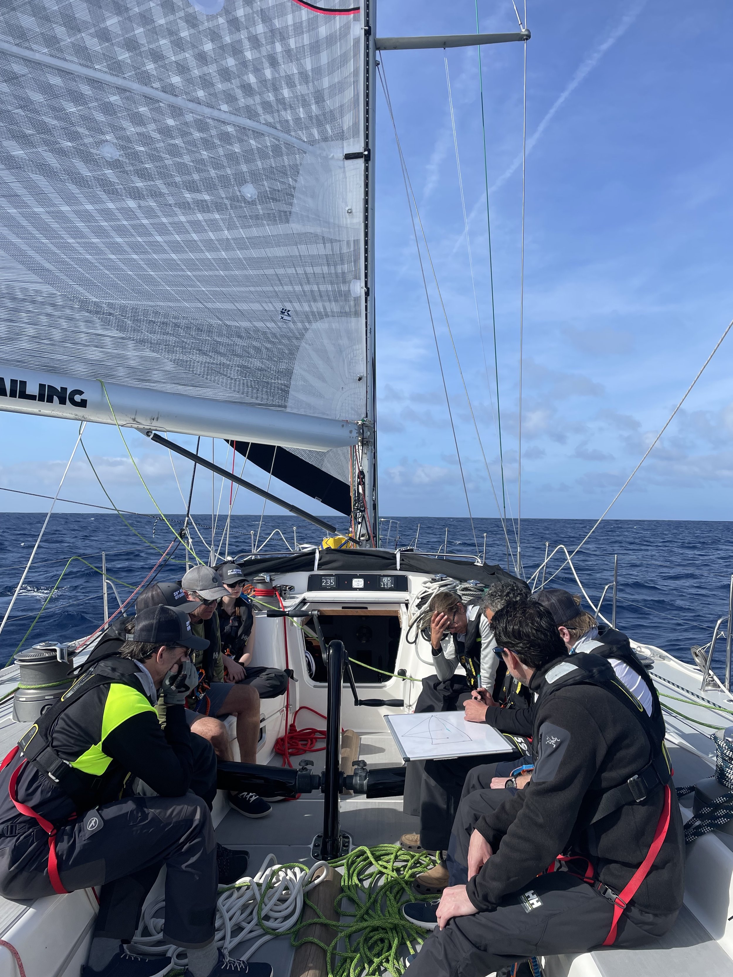 But that’s over a week away. Right now we’re all settling into the moment on our second night at sea, the stars bright overhead and the damp night air keeping us cool in the cockpit.