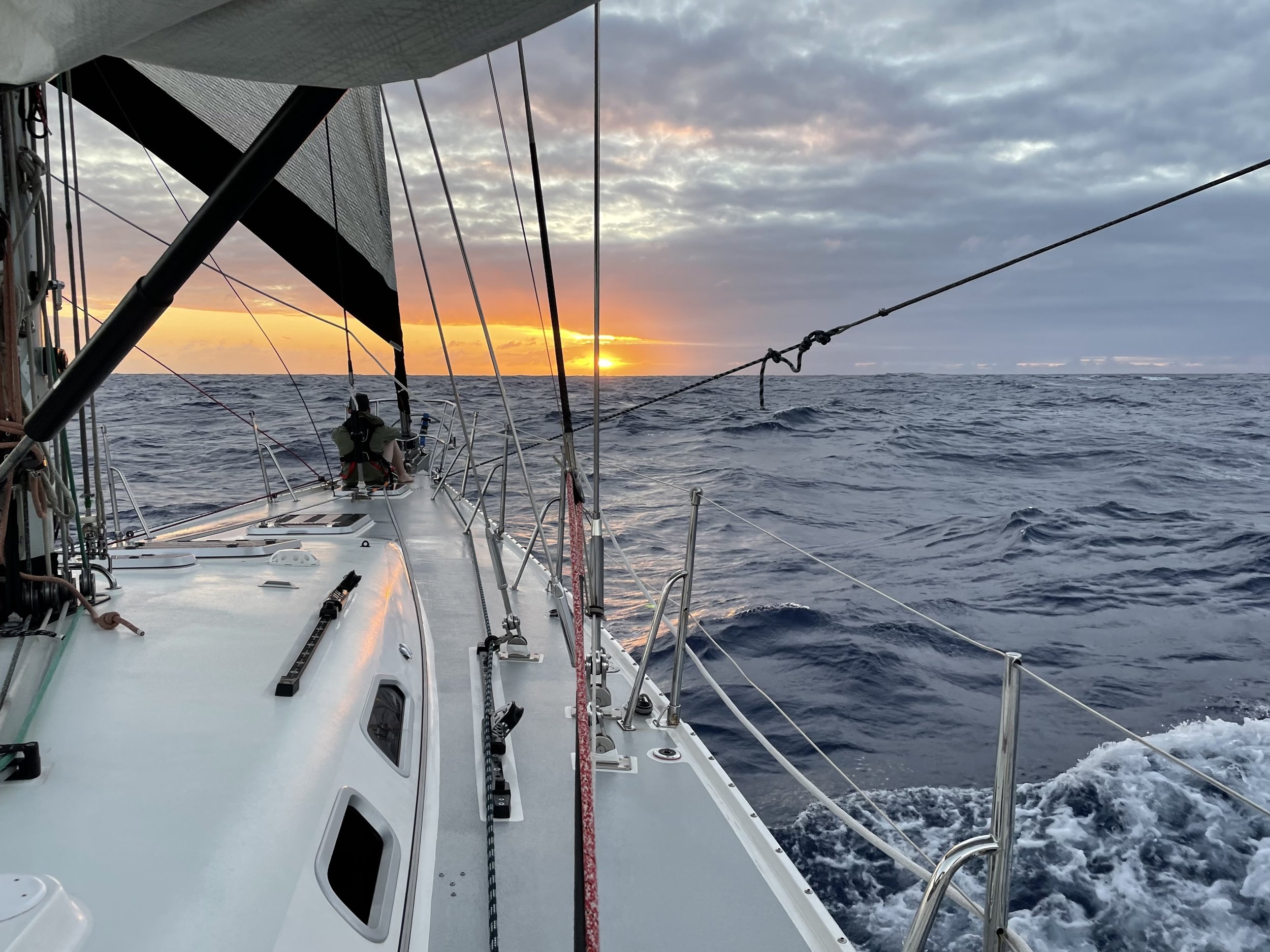 By Alex. FALKEN Skipper | Yesterday we left Ensenada at around 08:30 in the morning. It was sunny and you could barely feel any wind in your face. We went through the process of hoisting sails and straight away we dived into reefing drills followed by tacking. After 6 reefs and 12 tacks, we decided to settle into the watch system and embrace the night.