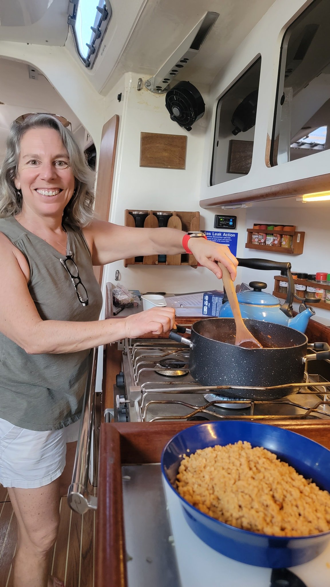 As if to top off the day with one last highlight, Jen and Rene served up a lovely couscous at sunset, with spices that Rene brought us straight from Morocco.This was our first true sunset, after the northeasterlies finally managed to clear the dusty haze that has now clouded the horizon for days. And as the day merged into the moonless night, the stars appeared brighter than ever before, revealing our Milky Way.