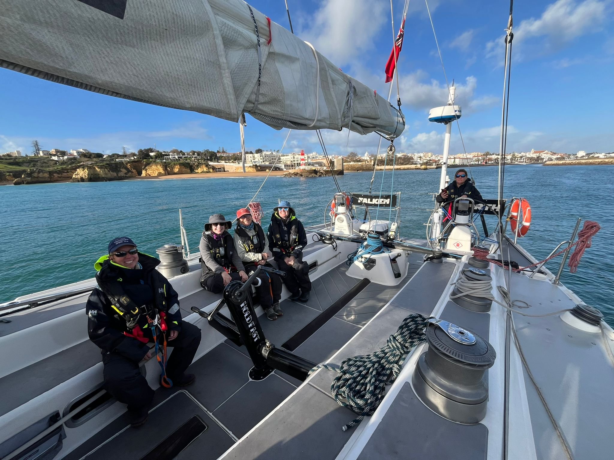 Departure Day! It's 8:30 in the morning and the crew on FALKEN is doing the final prep before departure. Crew arrived on the 4th to sunny Lagos. We knew some weather was coming in on Sunday, so we put all crew to work straight away (after a cup of tea—when you have Brits onboard, tea breaks are taken very seriously) and hoisted the Yankee. Great teamwork to learn how to work together and operate the winches! After a nice dinner ashore, we were all pretty tired, but as usual, not everyone slept that great the first night—lots of new noises, new people, and some dock lines moving around.