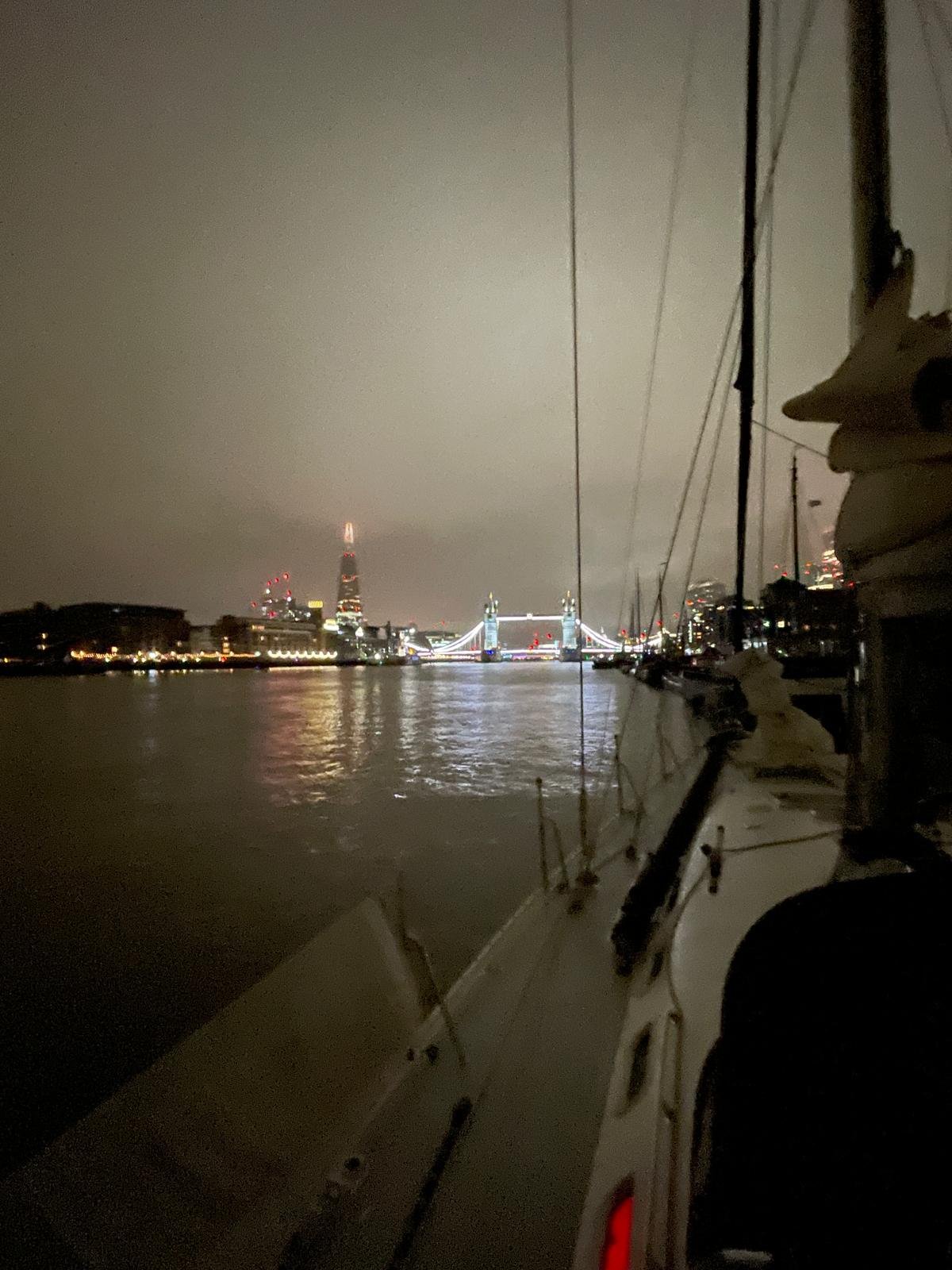 We arrived at the mouth of the River Thames yesterday morning and started the engine, motoring up to London. We had dinner onboard while watching old wharf buildings and docks go by as we motored along. We ended the night with a well-deserved pint or two at a pub nearby.