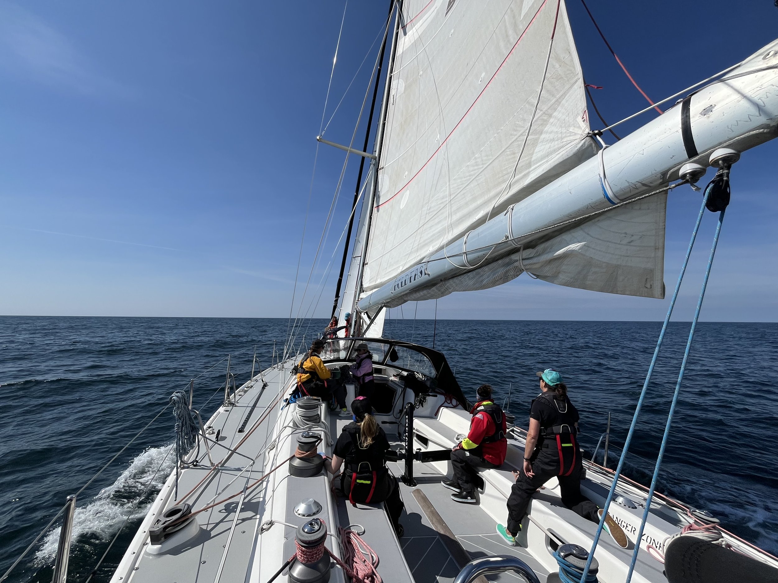 By Alex. FALKEN Skipper | After a windless night drifting between Santa Catalina and San Clemente Islands, we finally managed to find the wind! As soon as the breeze filled in, Adam had just wrapped up his great lesson on boat-keeping and manuals,