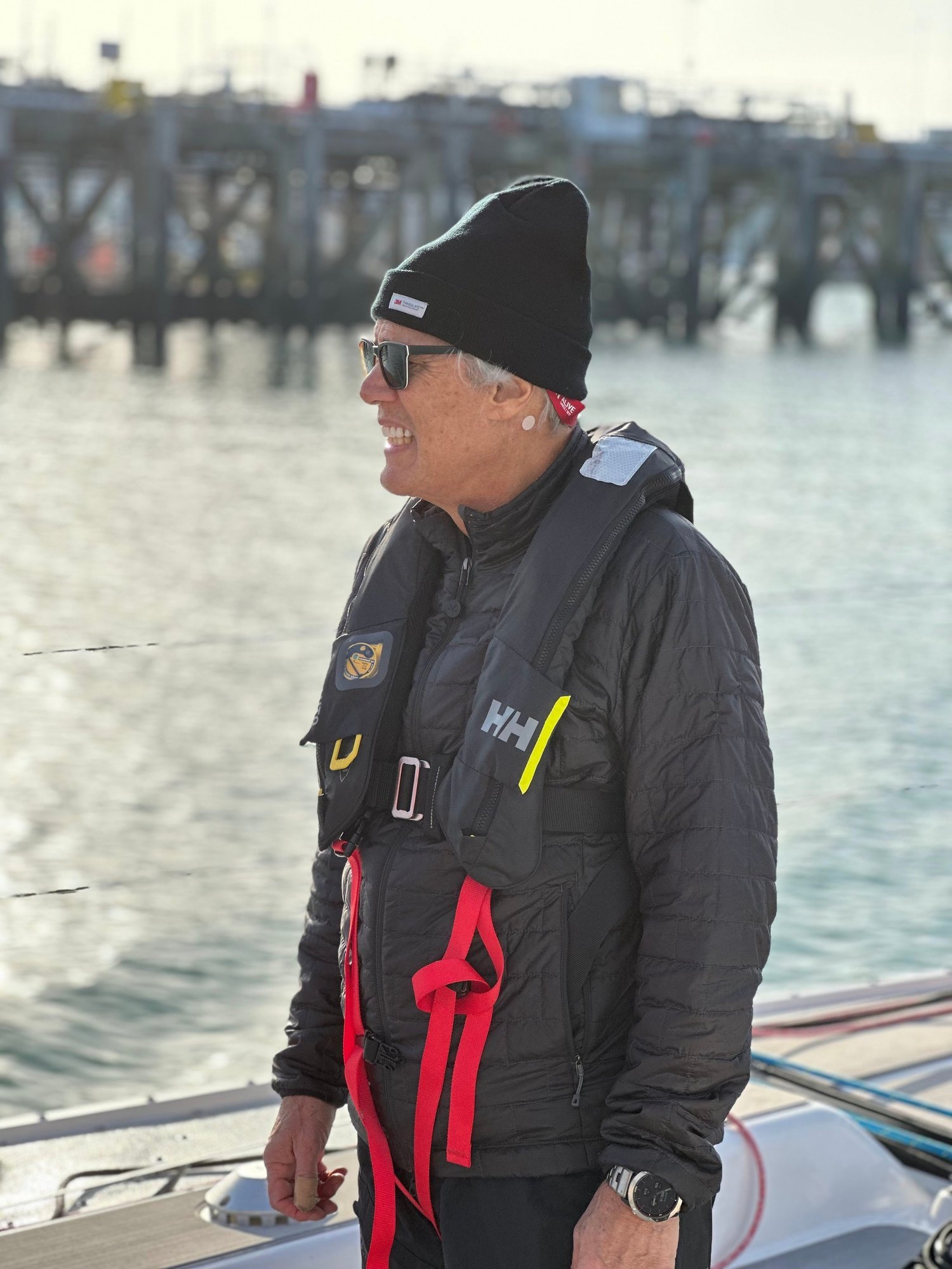 - Helly Hansen 'Inflatable' PFD with integrated harness to use while aboard.